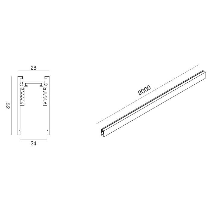 48V elektromechanisch modulair aluminium railsysteem deelbaar voor opbouwmontage.