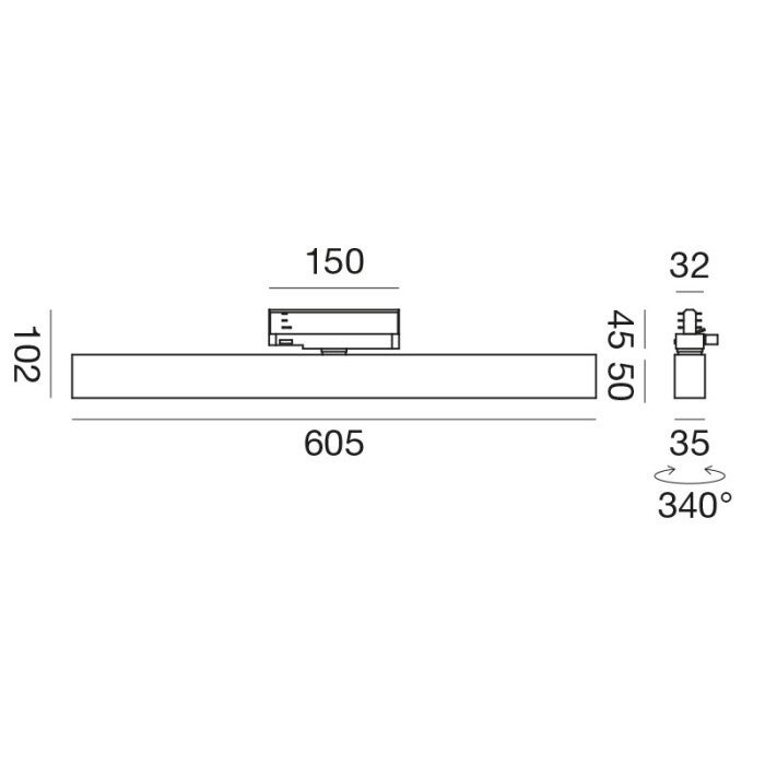 Eurostandaard railspot met verstelbare draaiing.