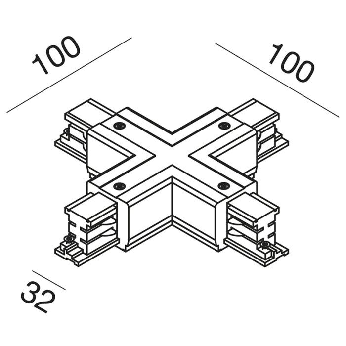 Voor elektrische en mechanische verbinding van vier raildelen in kruisopstelling. Ook te gebruiken als aandrijfunit (voedingspunt).