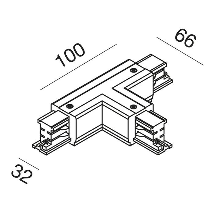 T-stuk voor elektrische en mechanische aansluiting binnen een railsysteem (linker uitvoering). Te gebruiken als stroomverdeler.