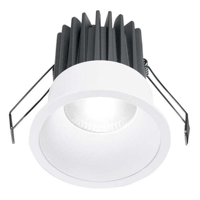 Stijlvolle inbouwspot met aluminium frame in satijnwitte buitenzijde en binnenzijde voor een moderne en strakke uitstraling.