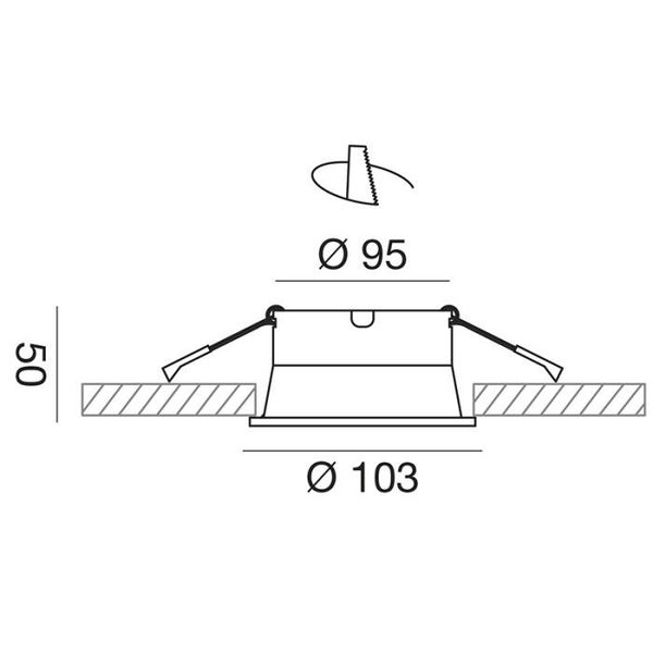 Strakke inbouwspot met aluminium frame en geïntegreerde koelplaat in satijnwitte afwerking.