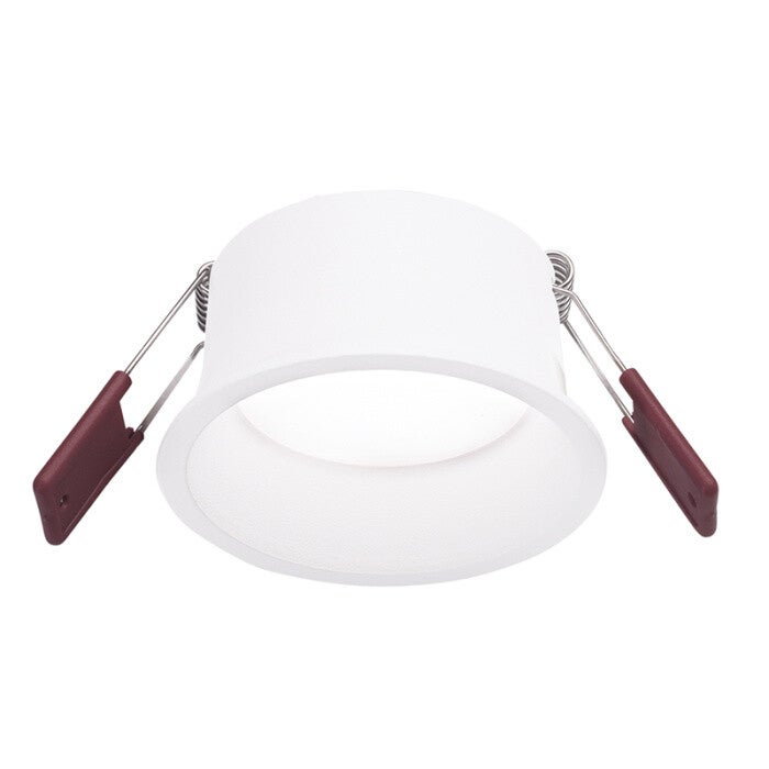 Moderne inbouwspot in satijnwitte afwerking met aluminium frame en koelplaat.