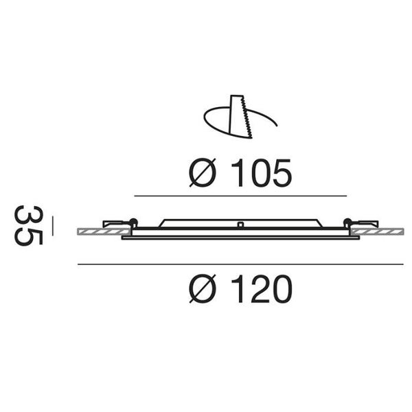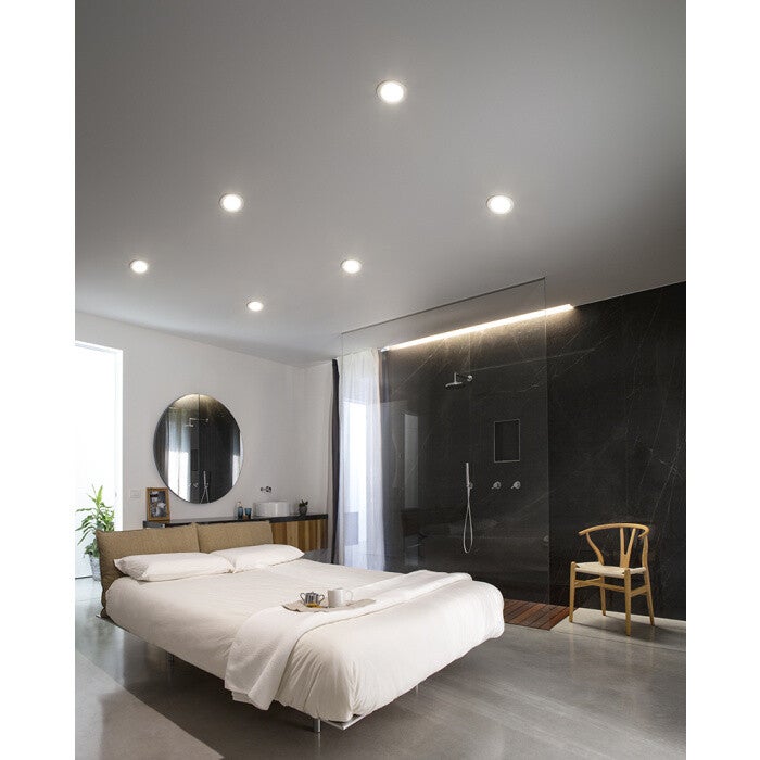Ronde inbouwspot met thermoplastische behuizing en antireflecterende kunststof diffuser.