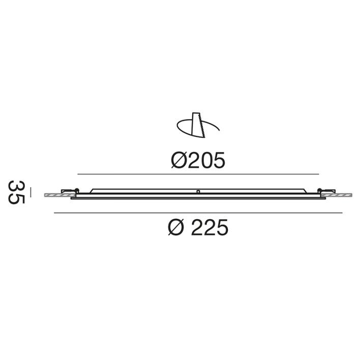 Ronde inbouwspot met thermoplastische behuizing en antireflecterende kunststof diffuser.