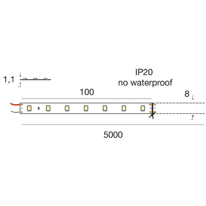Met een vermogen van 4,8W per meter en een totale lichtopbrengst van 3000 lumen is deze strip ideaal voor subtiele, decoratieve of indirecte verlichting.
