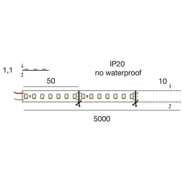 De LED-strip bevat een rol van 5 meter. De LED’s zijn gemonteerd op een flexibele, zelfklevende strip.