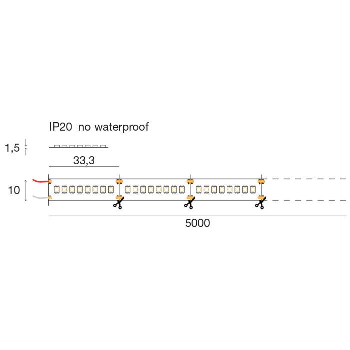 De LED-strip bevat een rol van 5 meter. De LED’s zijn gemonteerd op een flexibele, zelfklevende strip.