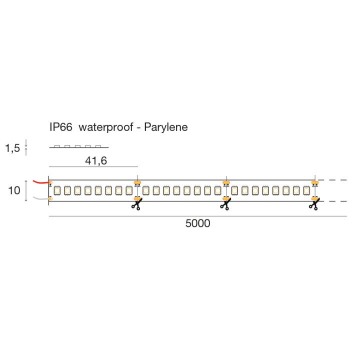 Dankzij de IP66-classificatie is deze LED-strip stofdicht en beschermd tegen krachtige waterstralen, waardoor hij ideaal is voor buitengebruik en vochtige toepassingen.