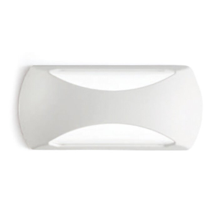 Strakke buitenwandlamp met kunststof frame en moderne matwitte afwerking.