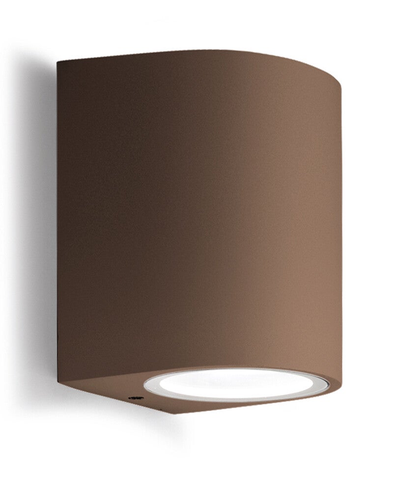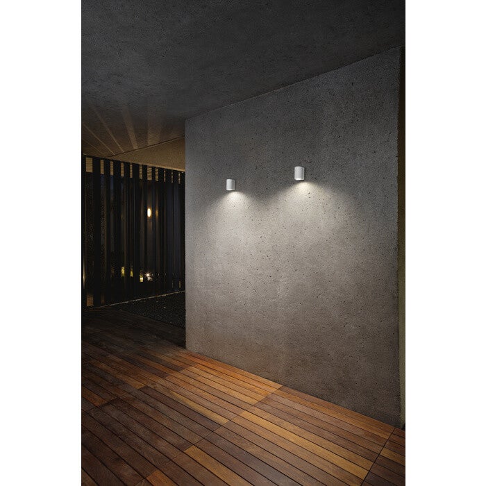 Moderne buitenwandlamp met gegoten aluminium frame en stijlvolle matwitte - antracietgrijze of roestkleurige afwerking.