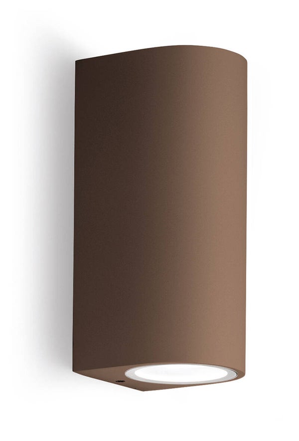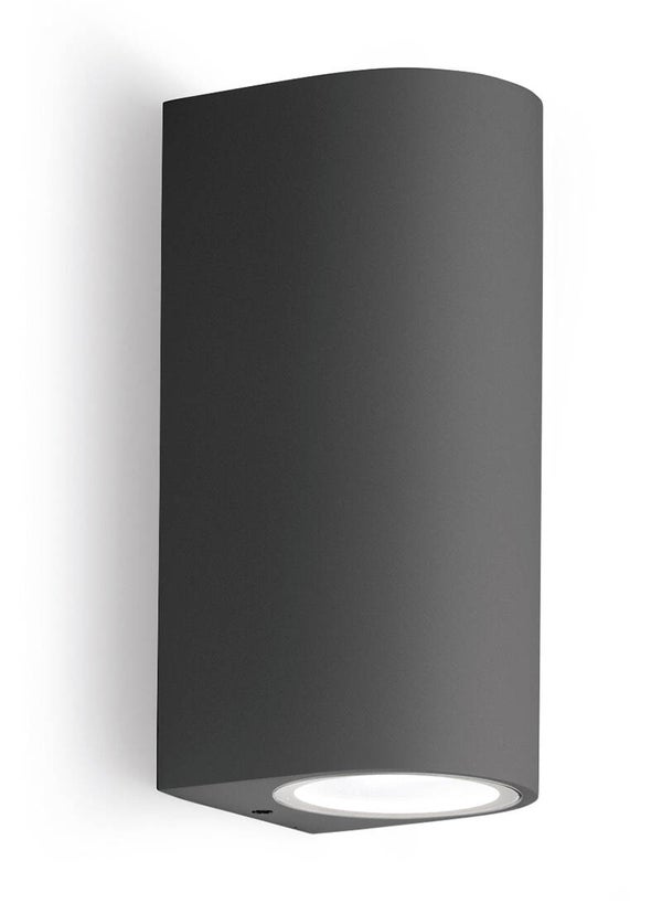 Deze wandlamp werkt met 2x GU10 lichtbronnen (max. 2x35W) en creëert een mooi up & down lichteffect tegen de gevel. Ideaal voor inkomzones, tuinmuren en terraswanden.