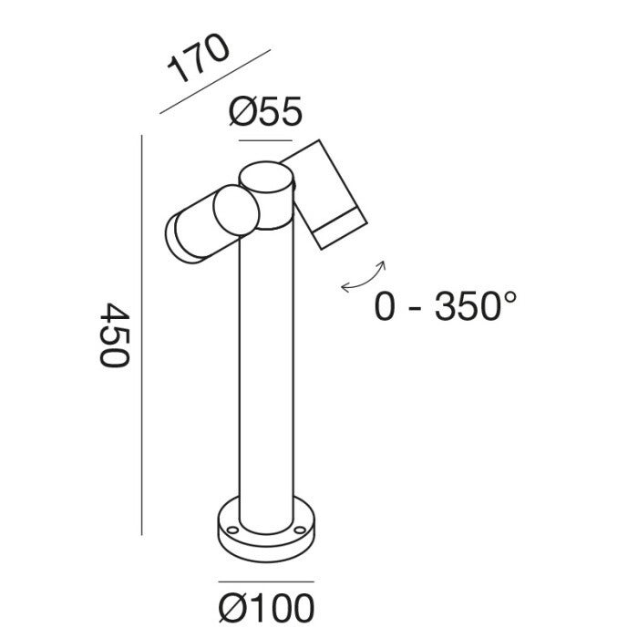 Buitenpaaltje met gegoten aluminium structuur en uitgevoerd met twee lichtkoppen voor een bredere lichtspreiding.